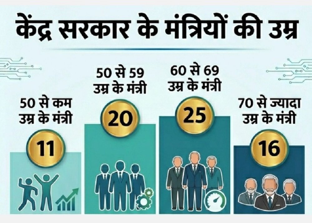 JawanBharat : जवान भारत को चला रही ‘बूढ़ों की सरकार’ :-  भारत की केंद्र सरकार के मंत्रियों की औसत उम्र 60 साल से ज्यादा है। भारत में सबसे कम उम्र के मंत्री 38 साल के हैं और सबसे उम्रदराज मंत्री 81 साल के हैं। भारत में राज्यों के मुख्यमंत्री हों, केंद्र सरकार के मंत्री हों या राज्यों की सरकार में मंत्री हों, सब की औसत उम्र 60 साल से ज्यादा है जबकि भारत में लगभग एक चौथाई मतदाताओं की उम्र 30 साल से कम है।